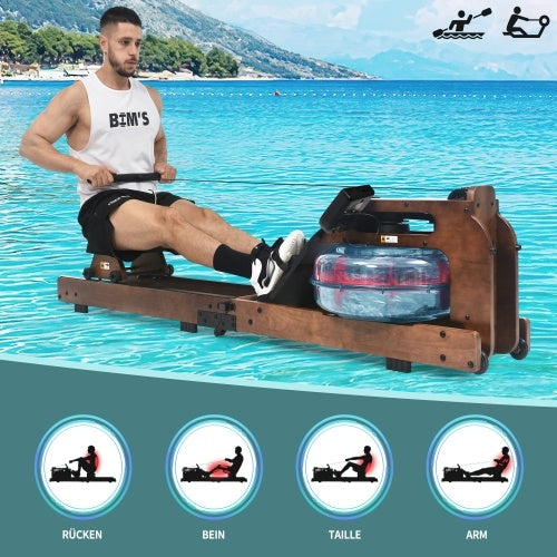 Begib dich auf eine Fitnessreise mit unserem hölzernen Rudergerät mit Wasserwiderstand. Das einseitige Kupplungslager gewährleistet reibungslose Ruderbewegungen, und sein flüsterleiser Betrieb ermöglicht eine ununterbrochene Konzentration auf dein Training. Spüre die Ruhe des Ruderns auf dem Wasser mit dem robusten, 4 mm dicken Polycarbonat-Wasserbehälter. Der 500 mm Durchmesser schafft ein authentisches Rudererlebnis, als ob du auf einem friedlichen See rudern würdest.