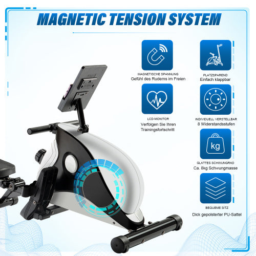 Product Name:Magnetisches Rudergerät Indoor-Faltrudern mit magnetischem Bremssystem, LCD-Monitor und 8-stufigem Widerstandsanpassungs-Fitnessgerät (Enthält kein PAD)